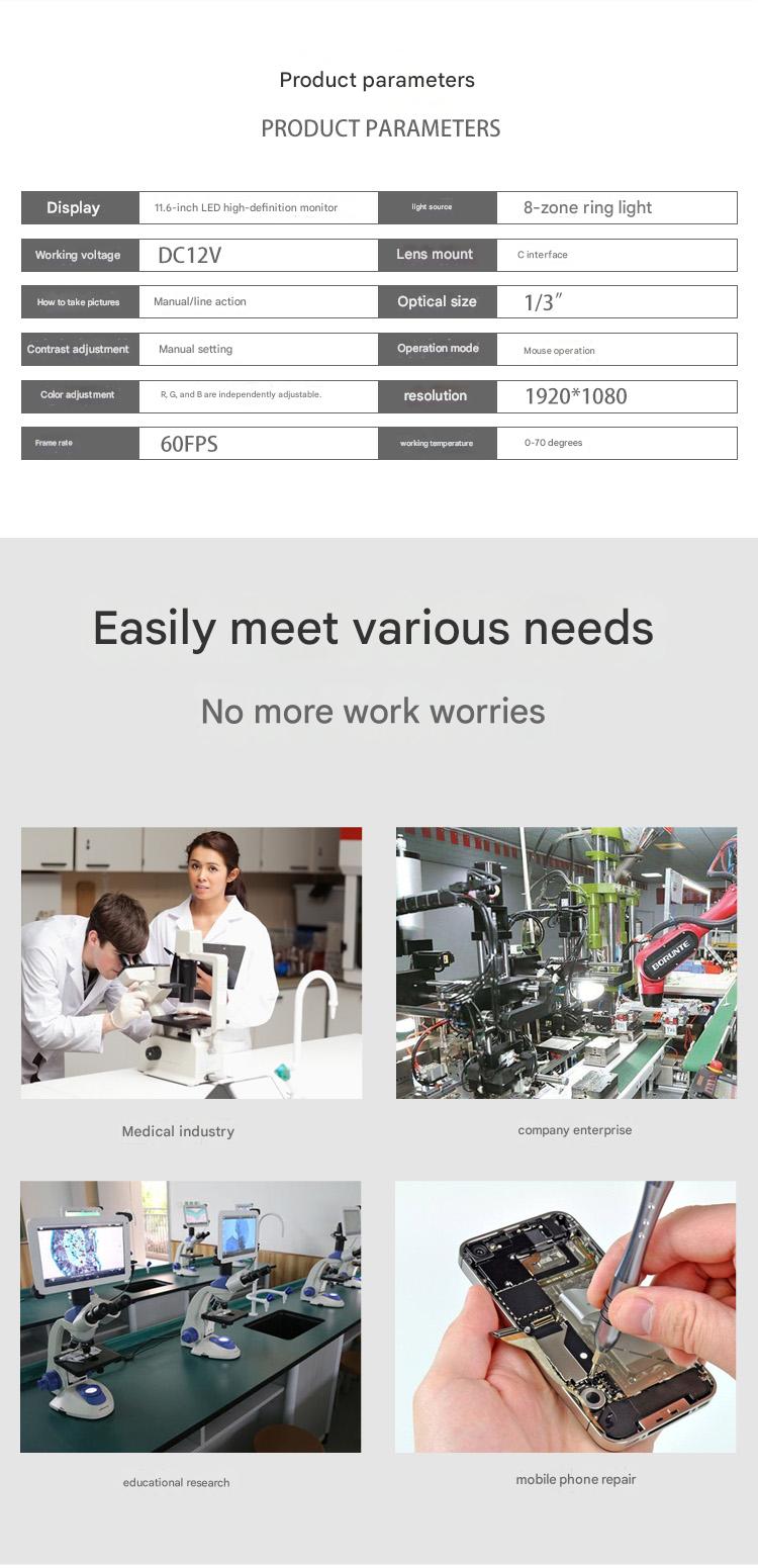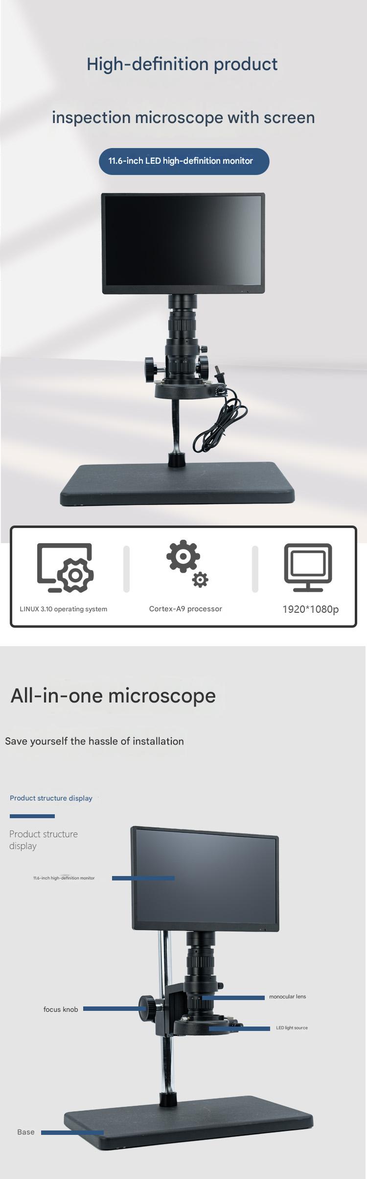 3D Digital Microscope TVN-800+P3D hardwares: The entire body (including the lens, LED light, and processing unit); 13 inch Screen; Accessories (DC power calbe for Microscope/screen, mouse, HDMI cable)